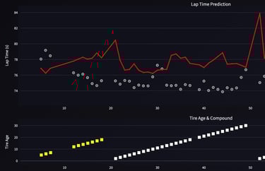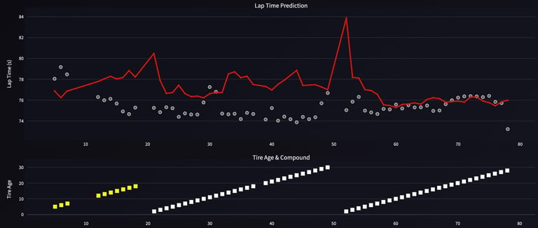 The Model: Built a physics-informed XGBoost model using 26,000+ laps of historical data. I engineered 40+ features, including tire degradation curves and fuel load physics, deployed via a Dockerized ML pipeline.